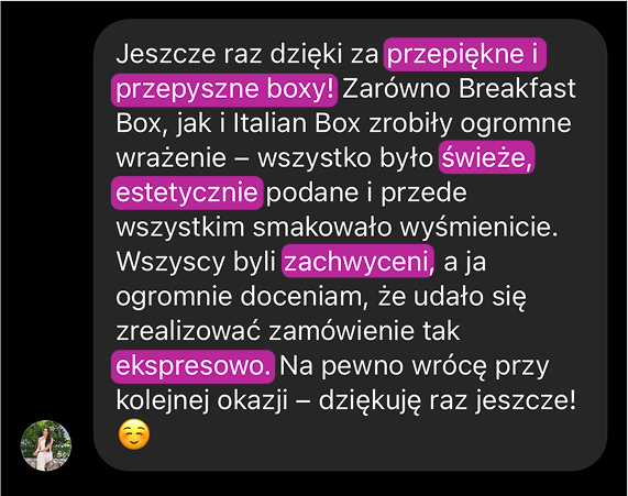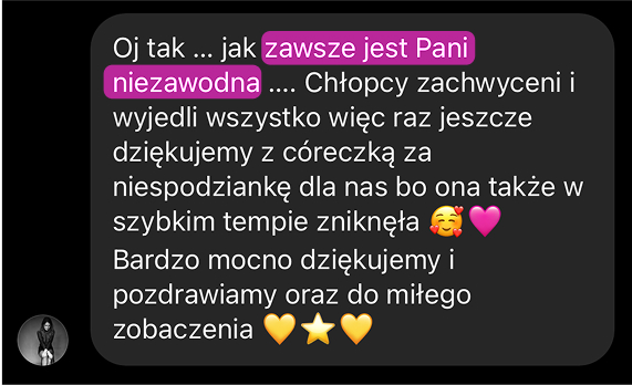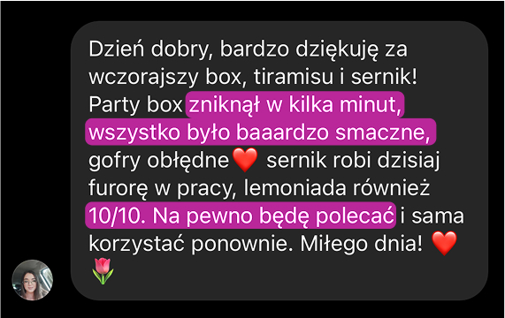 W Mniam Box stawiam na domowe smaki w eleganckim wydaniu - idealne na każdą okazję. Każde zamówienie przygotowuję tak, jakbym robiła je dla rodziny: świeże, dopracowane i pięknie podane. A potem dowożę prosto pod Twoje drzwi.